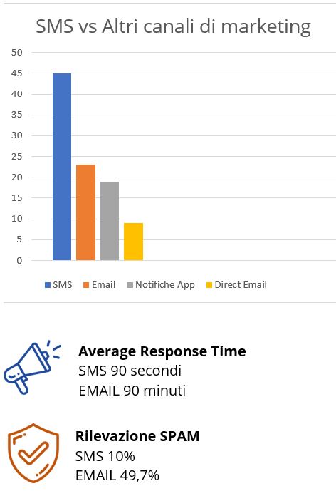 - Gli SMS hanno un tasso di apertura del 98% rispetto all’email marketing.